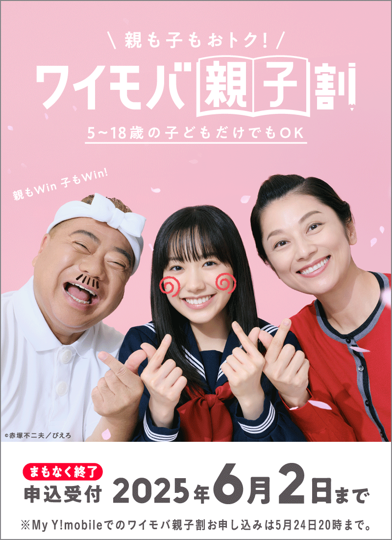 最大13ヵ月間割引!親も子も超おトク!ワイモバ親子割