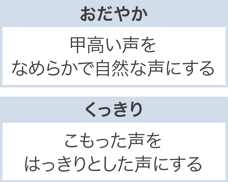 相手の声を標準の音質から、自分聞き取りやすい2種類の音質に変更できます。