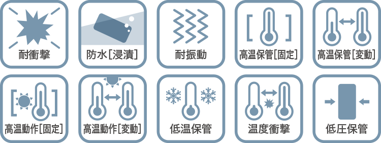 ※本製品の有する性能は試験環境下での確認であり、実際の使用時すべての状況での動作を保証するものではありません。また、無破損・無故障を保証するものではありません。
