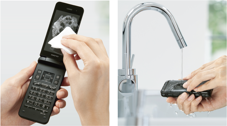 【防水について】IPX5:内径6.3mmのノズルを用いて、約3mの距離から約12.5L/分の水を3分以上注水する条件であらゆる方向からのノズルによる噴流水によっても、電話機としての性能を保ちます。IPX8:常温で、水道水、かつ静水の水深1.5mの水槽に電話機本体を静かに沈め、約30分間水底に放置しても、本体内部に浸水せず、電話機としての性能を保ちます。石けん、洗剤、調味料、ジュース、海水など水道水以外のものを、かけたり浸けたりしないでください。また、高温のお湯や冷水に浸けたり、かけたりしないでください。背面カバーは確実に取り付けてください。