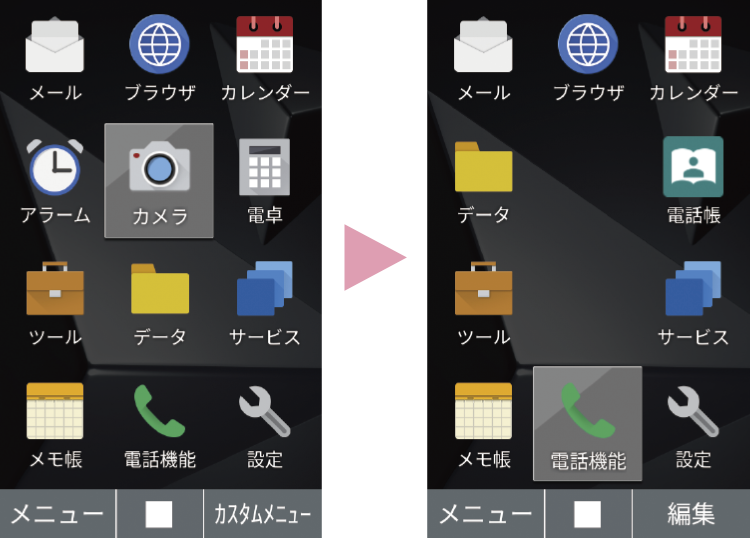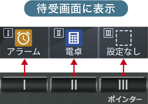 発信先やよく使う機能を3個まで登録可能。ワンタッチで呼び出せます。