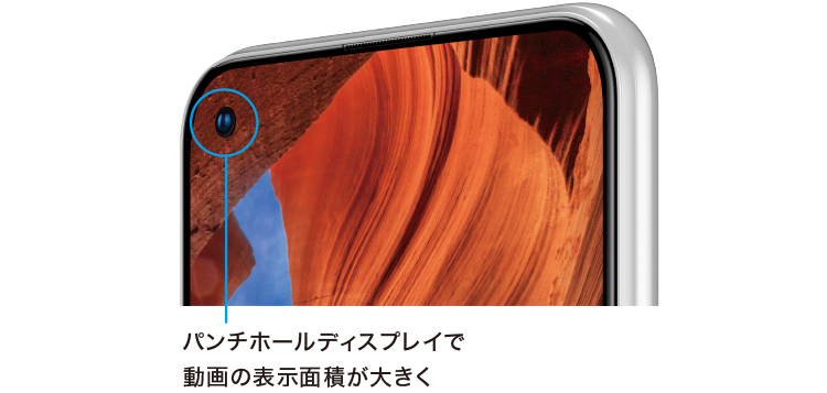 カメラホールを小さくしたパンチホールディスプレイだから、迫力のある動画もフルスクリーンで楽しめる。