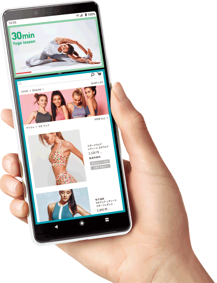 2つのアプリを同時に表示し操作できるマルチウィンドウ機能がとても便利。動画を見ながらSNSをしたり、ショッピングサイトを見比べたりできます。