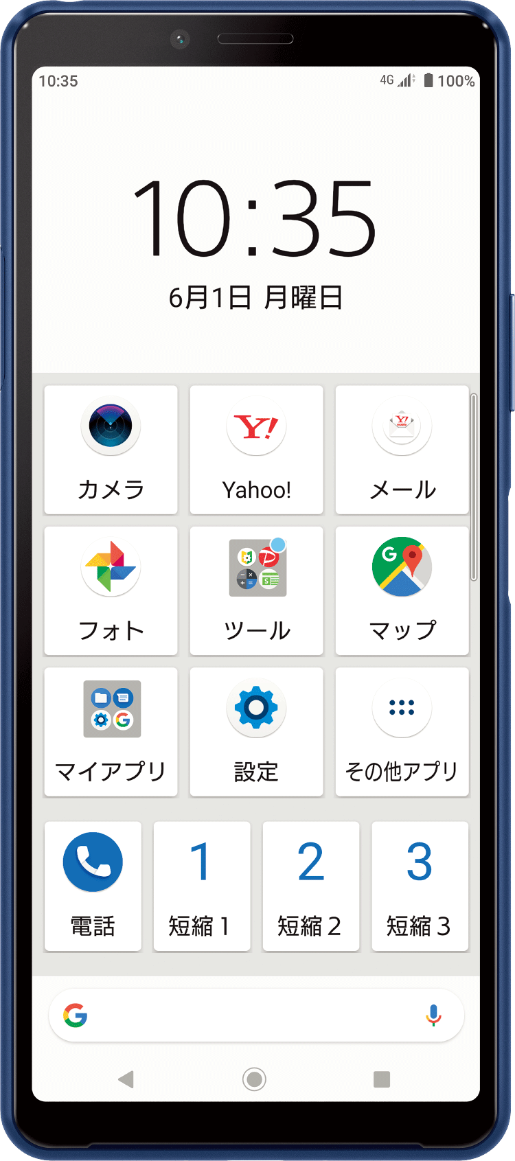 スマホ初心者の方でも操作がしやすい「かんたんホーム」は、ホーム画面のアイコンからかんたんに切り替え可能。連絡先へのショートカットで家族や友人にもかんたんに電話できます。