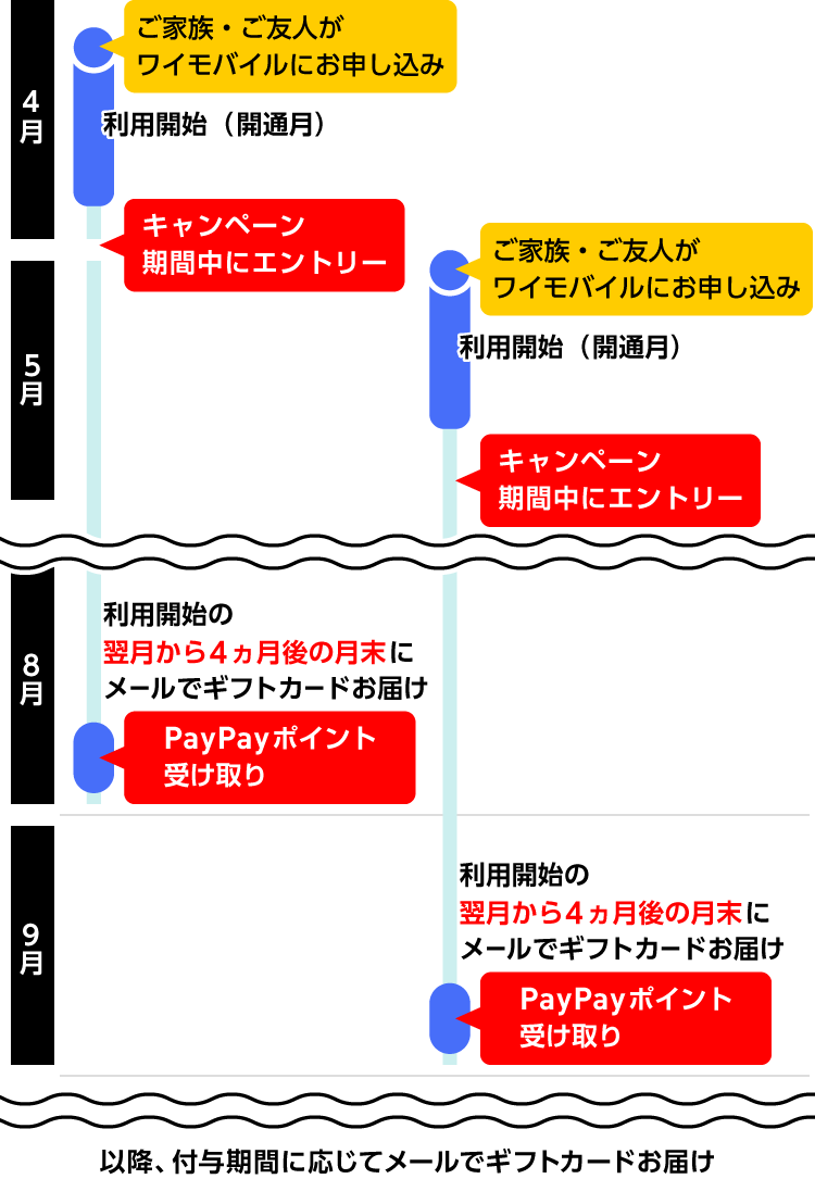 開通月の翌月から4ヵ月後の月末に、メールでPayPayポイントコードを送信します。