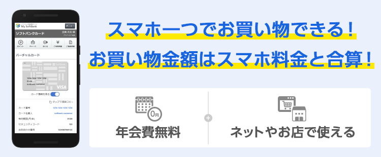 ソフトバンクカードは、「ワイモバイルまとめて支払い」でチャージして、Visaが使えるインターネットのお店でご利用いただけるバーチャルカードです。